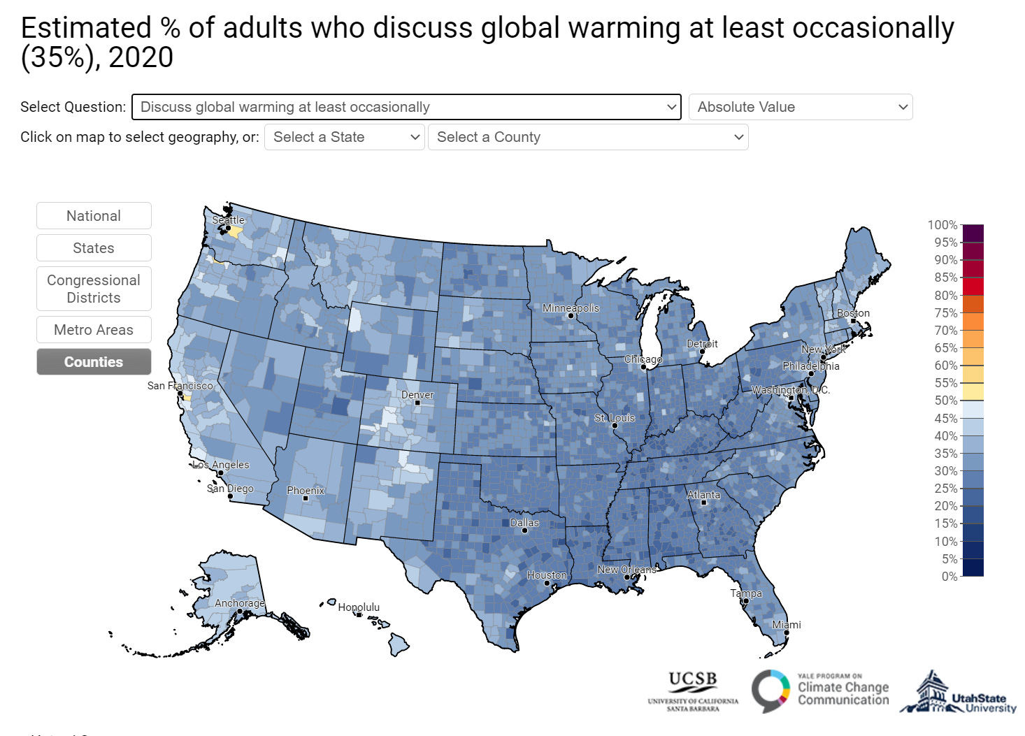 A large majority, 65%, of Americans talk about climate change less than once a week. The numbers are even worse for hearing about climate change in the media, 75% report not hearing about it at least weekly. (This tool from the Yale Program for Climate Change Communication is really great; I highly recommend checking it out)